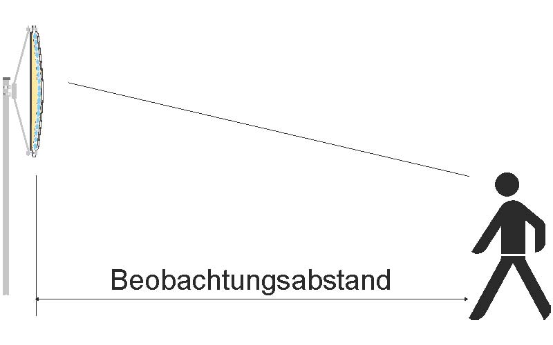 Der Beobachtungsabstand ist die Distanz zwischen dem Montageort und dem Standort des Verkehrsteilnehmers, der den Spiegel nutzen soll.