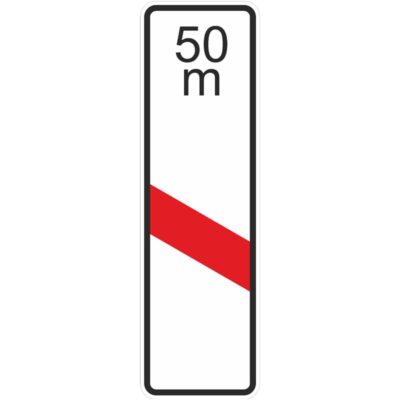 Verkehrszeichen 159-21 Zweistreifige Bake mit Entfernungsangabe, Aufstellung links