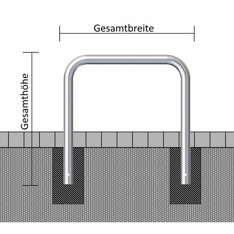 Die zweibeinigen Rundrohrbügel mit 1000 mm Höhe betonieren Sie im Boden ein. Als Auszugssicherung aus dem Betonfundament liefern wir Ihnen 2 Erdanker mit. Die Löcher im Rundrohr unten sind entsprechend vorgebohrt.