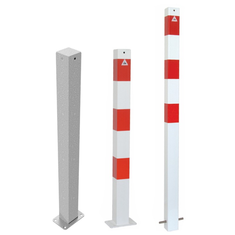 Die Absperrpfosten 70 x 70 mm werden aus verzinktem Stahlrohr mit oder ohne eine weiße Beschichtung und rote Reflexstreifen gefertigt. Sie sind zum Einbetonieren mit Erdanker oder zum Aufdübeln mit einer Bodenplatte 100 x 150 mm erhältlich. Passende Dübel können Sie separat bei uns bestellen.