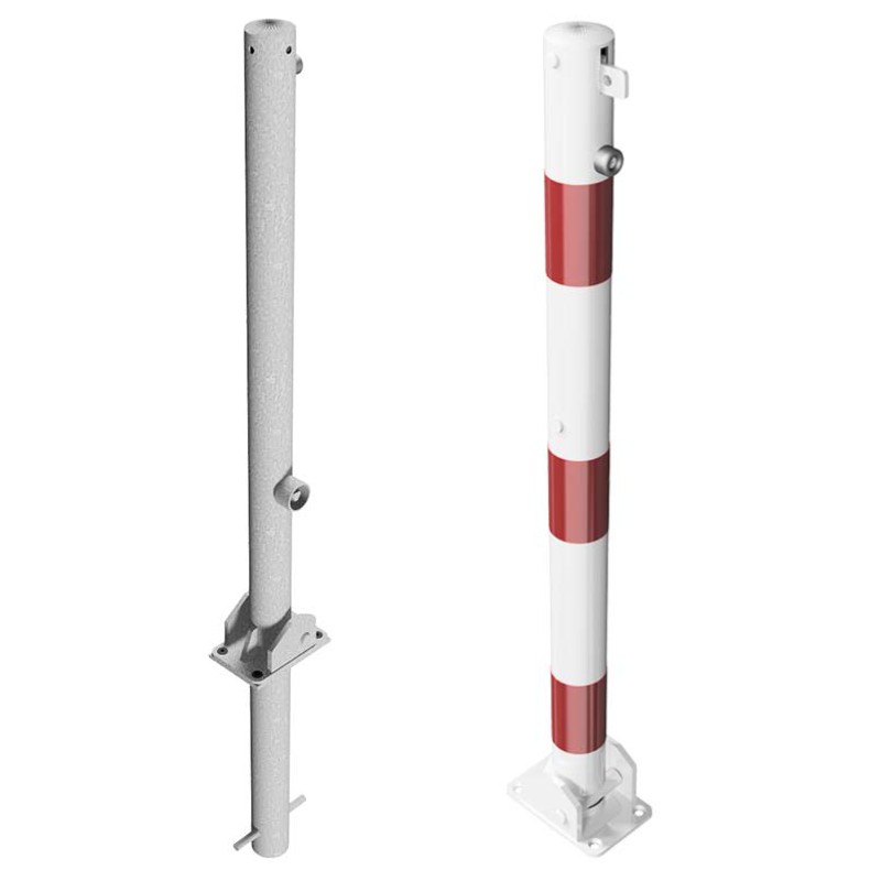 Absperrpfosten Ø 60 mm, umlegbar mit Dreikantverschluss, rot-weiß / verzinkt