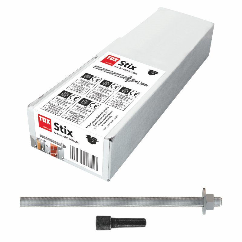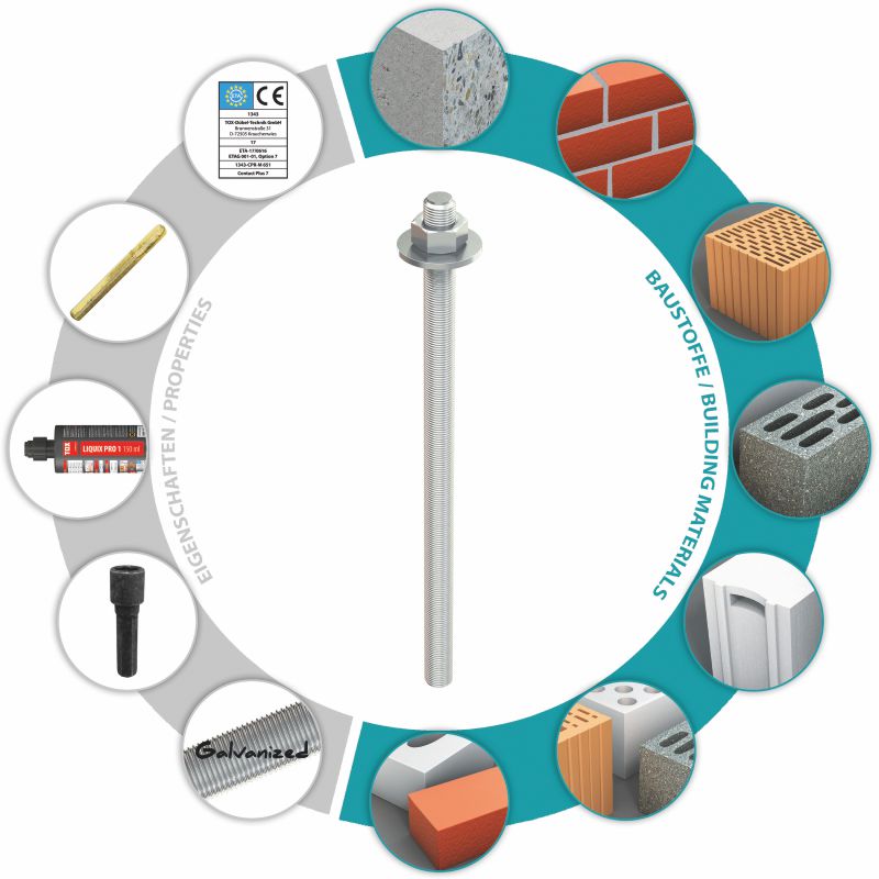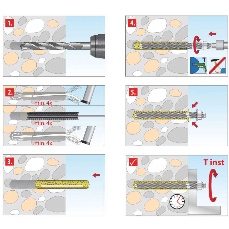 Bohren Sie ein Loch in der Größe der Glaspatrone, säubern es und setzen die Patrone ein. Dann nur noch die Gewindestange eindrehen und schon sind Sie fertig!
