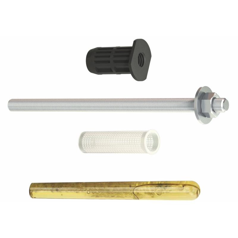 - Gewindestange, Mutter mit integrierter U-Scheibe, Siebhülse
