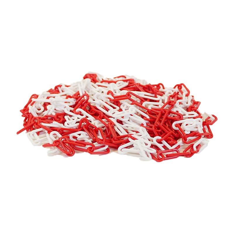 Ein echtes Leichtgewicht ist unsere Absperrkette aus Kunststoff. Bei einer Länge von 25 Metern wiegt sie nur etwa 2 oder 2,5 kg. Die Kettenglieder haben eine Stärke von 6 oder 8 mm.