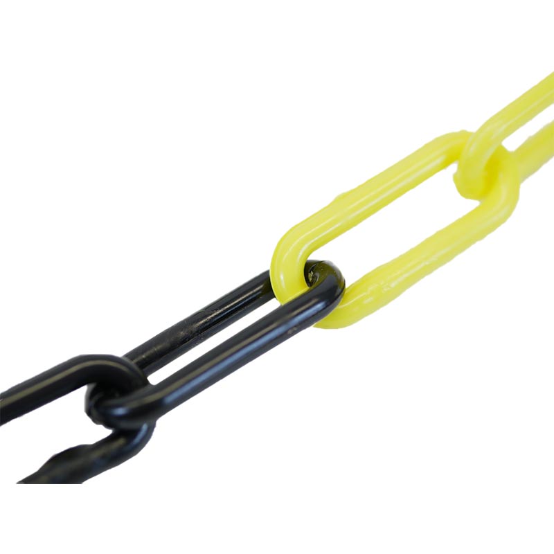 Diese Kunststoffkette können Sie flexibel einsetzen und bei Bedarf mit Hakengliedern oder Verbindungsgliedern erweitern. Mit ihrer Farbkombi in Schwarz-Gelb oder Rot-Weiß hebt sie sich optisch gut von der Umgebung ab.