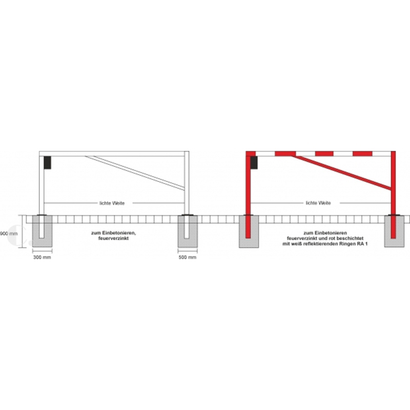 - Farbe: verzinkt oder Rot mit weißen Reflexstreifen RA 1