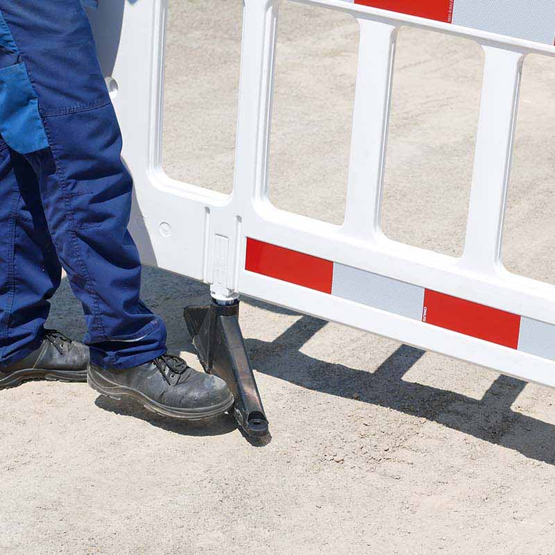 Das Absperrgitter aus Kunststoff von Schake mit drehbaren Füßen setzen Sie schnell und einfach an Arbeitsstellen und Gefahrenbereichen ein. Das geringe Gewicht, die integrierten Drehfüße und das unkomplizierte Haken- und Ösensystem sind die Pluspunkte dieses günstigen Kunststoffzauns.