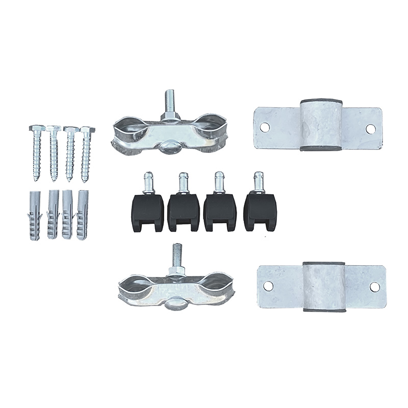 Für eine angenehmeres Handling können Sie die Absperrung mit Rollen versehen. Mit den Schellen können Sie eine Seite der Absperrung an einer Wand befestigen und die Absperrschere somit ortsfest montieren. Mit den Adaptern lassen sich mehrere Absperrungen sicher miteinander verbinden.