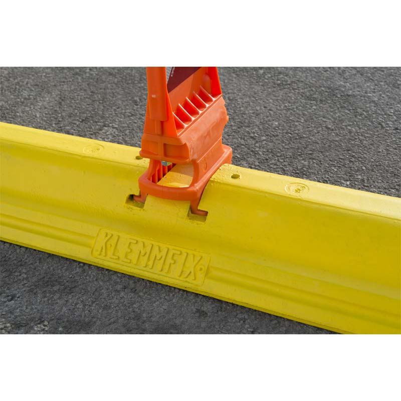 Die selbstaufrichtende Mini-Bake zeigt ca. 50 Prozent der Folienfläche einer Standardbake und ist mit hochreflektierender (RA2) rot-weißer Schraffenfolie bzw. als Abweiser beklebt. Sie wird auf der horizont Leitschwelle oder auf einer Leitboy Fußplatte montiert. Der Leitboy III – auch Klemmfix genannt – ist mit der horizont Leitschwelle BASt-geprüft und in dieser Kombination für den Einsatz auf Autobahnen zugelassen.