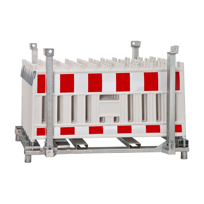 Das Transportgestell eignet sich zur Aufnahme von 20 Absperrschrankengittern FUTURE oder REFLEX. Alternativ können Sie 8 Sperrstrahlergarnituren unterbringen.