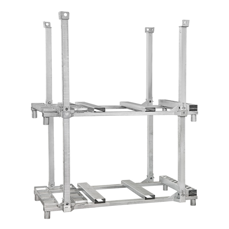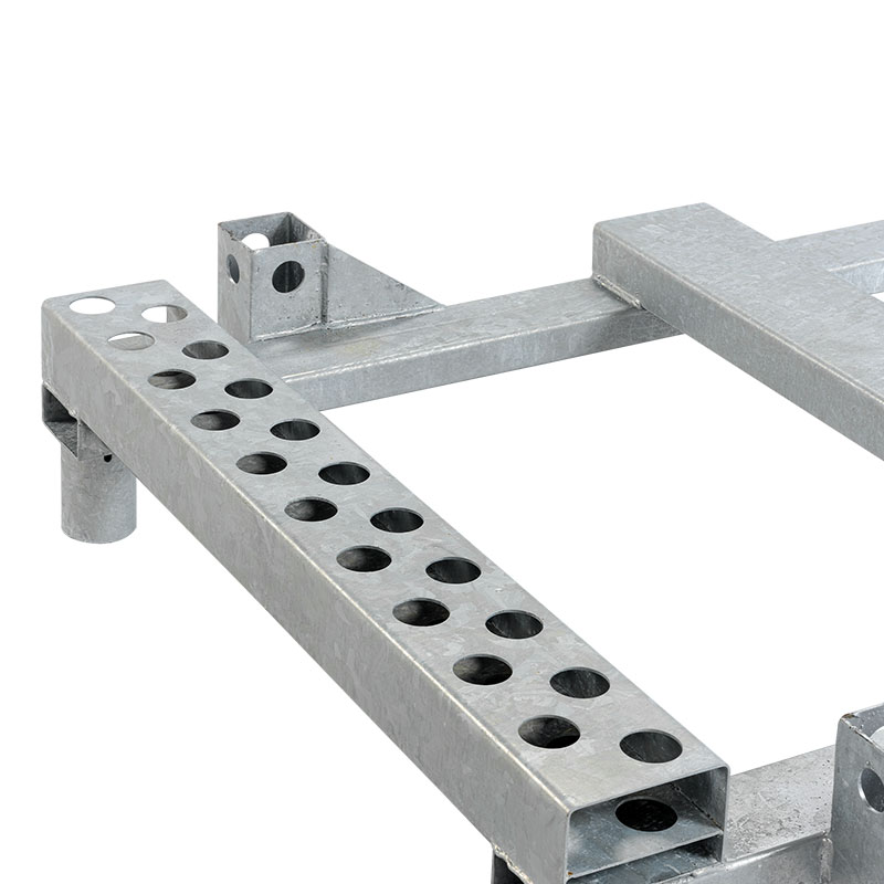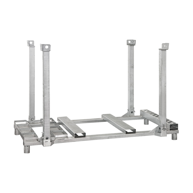 Das Gestell lässt sich mit einem Gabelstapler leicht versetzen und ist unbestückt problemlos stapelbar. Mit den passenden Stützen lassen sich die Transportgestelle IDEAL auch befüllt stapeln. Diese bei Bedarf bitte separat bestellen.