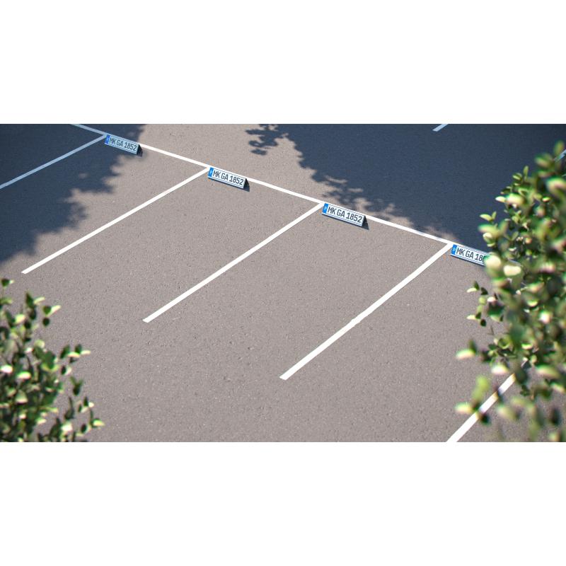 Dieser Parkbegrenzer zur Bodenmontage dient gleichzeitig als Überrollschutz und als Schilderhalter. So reservieren Sie die Parkfläche und verhindern ein zu tiefes Hineinfahren.