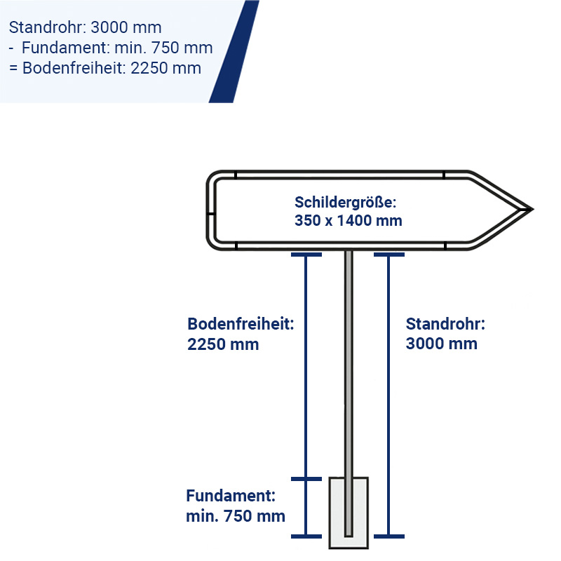 - für Schildergröße/Pfeilwegweiser: 350 x 1400 mm (HxB)