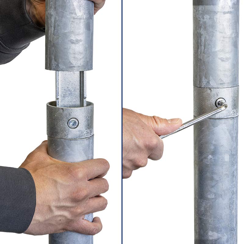 Mit dem Rohrverbinder Rohrclip verlängern Sie Rohrpfosten schnell und günstig vor Ort. Er eignet sich für Rohrpfosten mit 60 oder 76 mm Durchmesser.