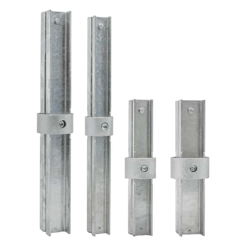 Dank der Schraube im robusten Stahlmittelring lässt sich das Adapterstück zur Rohrverlängerung schnell montieren. Es gibt keine außenliegenden Teile, die bei der Anbringung von Schildern stören könnten.