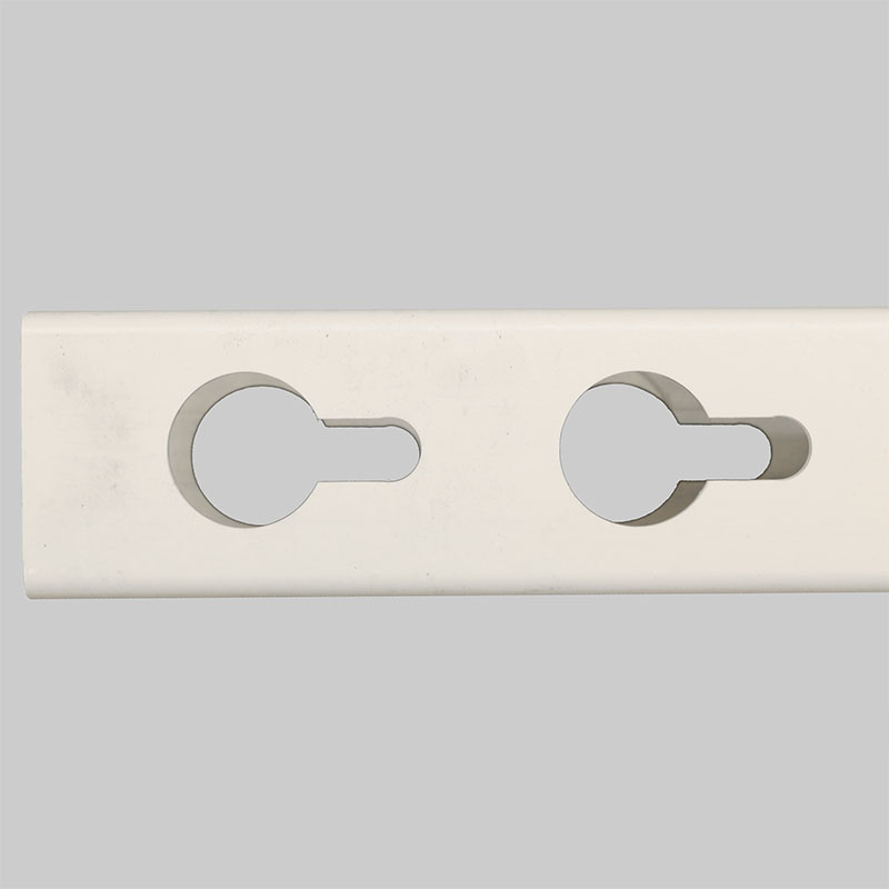 Auf der Vorder- und Rückseite des Vario-Schilderpfostens sind jeweils 3 schlüssellochförmige Vario-Bohrungen zur Aufnahme von Vario-Schildadaptern vorhanden.