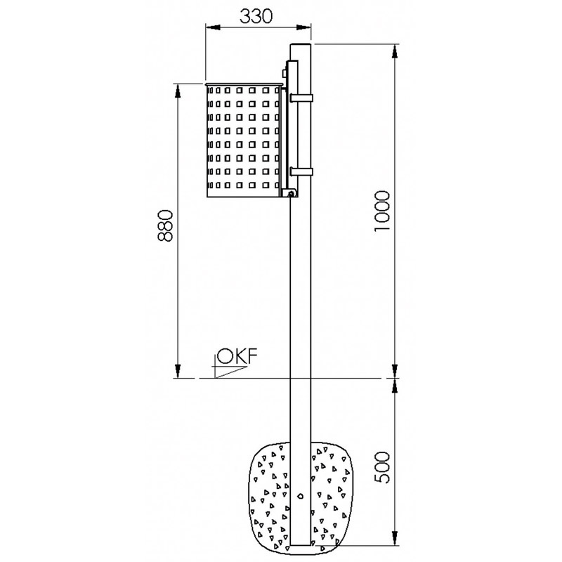 Den Abfallbehälter mit Befestigungsschiene an der Rückseite können Sie mit Bandschellen an einen Pfosten schrauben oder an einer Wand montieren. Die Version mit angeschweißten Rohrschellen eignet sich nur zur Pfostenmontage. Pfosten, Bandschellen und den Montagesatz 7304-01 zur Wandbefestigung finden Sie beim Zubehör.