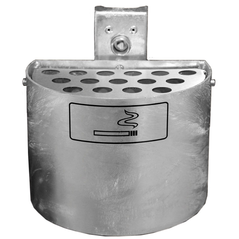 Der halbrunde Ascher 7067-00 von Renner präsentiert sich platzsparend und zweckmäßig, sieht dabei aber dennoch gut aus. Der Ascher aus verzinktem Stahlblech 2,0 mm ist für die Wand- und Pfostenmontage geeignet.