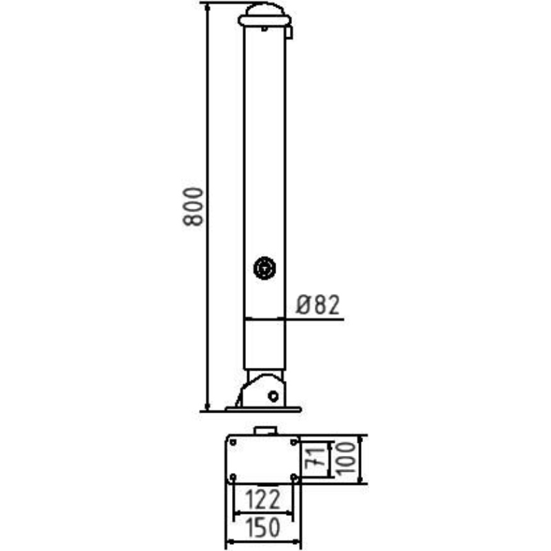 Umlegbar mit Bodenhülse zum Einbetonieren oder Bodenplatte zum Aufdübeln