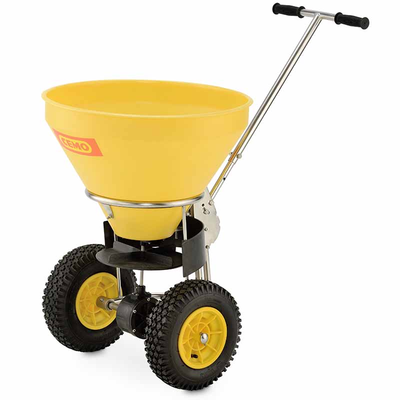 Mit dem großen CEMO Streuwagen SW 50-E mit 50 Liter Volumen sind Sie bestens gerüstet, wenn Sie mittlere bis große Flächen Streugut unterschiedlichster Art aufbringen möchten.