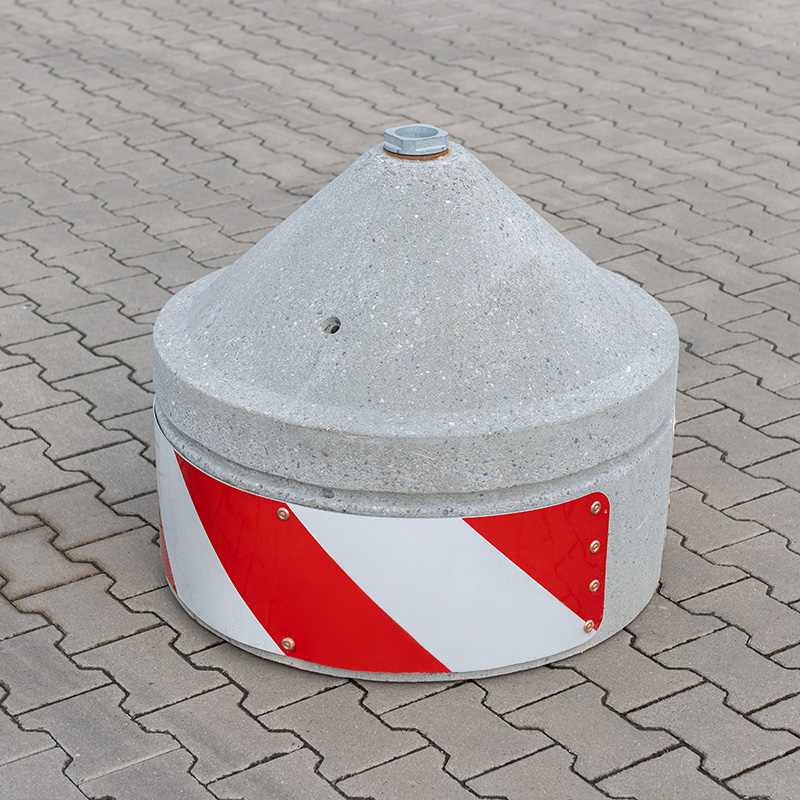 Mit einem Gewicht von ca. 500 kg, einer Höhe von ca. 67 cm und einem Sockeldurchmesser von ca. 80 cm steht der Kegel stabil und eignet sich für die dauerhafte Sicherung und Strukturierung von Verkehrsbereichen. Zwei reflektierende Schraffenbaken Typ RA1 verbessern die Sichtbarkeit bei Tag und Nacht.