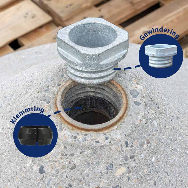- inklusive zwei Hebeschlaufen und zwei Verschlussstopfen
