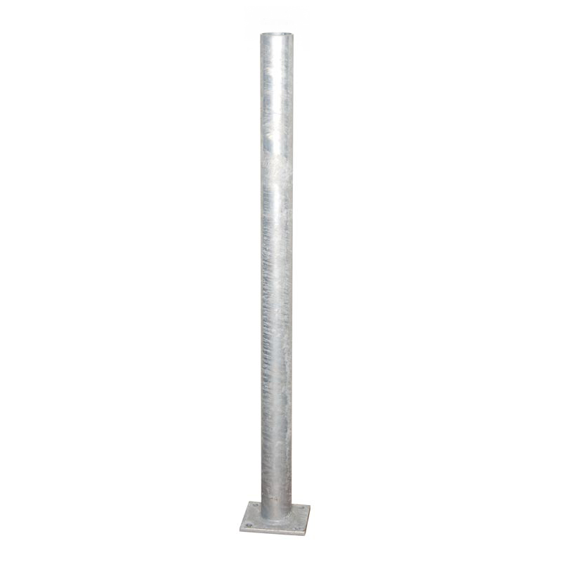 Der Mauerpfosten mit Bodenplatte besteht aus verzinktem Stahl. Der runde Pfosten ist auf einer viereckigen Stahlplatte aufgeschweißt, feuerverzinkt und in den Längen von 800 und 1200 mm lieferbar.