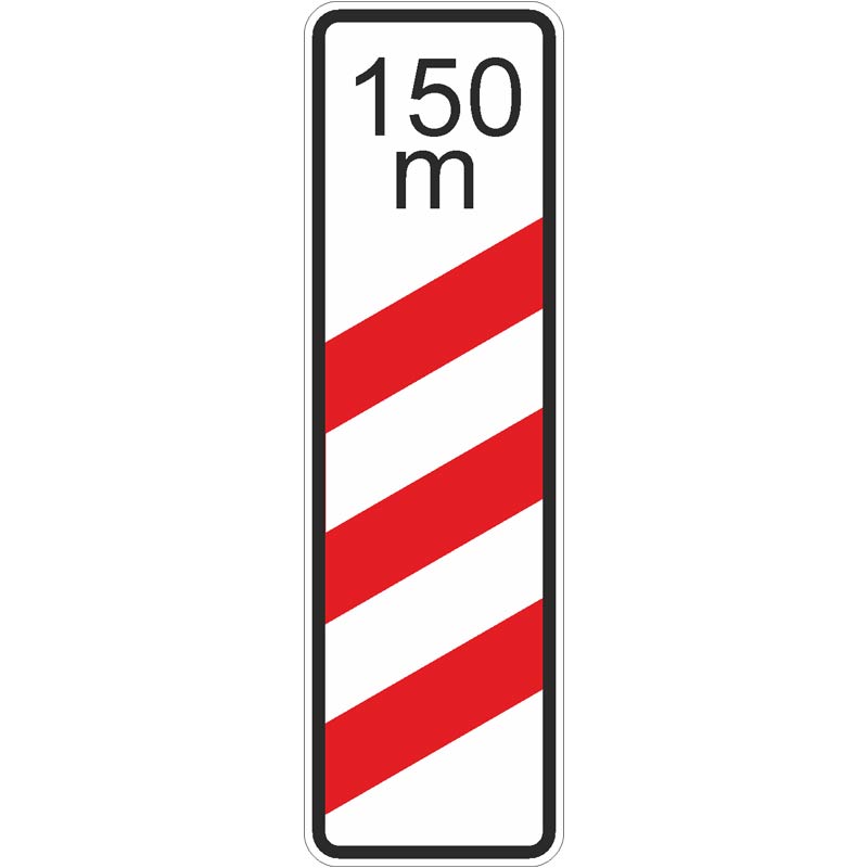 VZ 157-11 Dreistreifige Bake mit Entfernungsangabe 150 m, Aufstellung rechts im Überblick