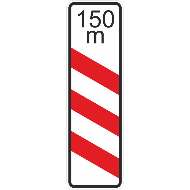 VZ 157-21 Dreistreifige Bake mit Entfernungsangabe 150 m, Aufstellung links im Überblick