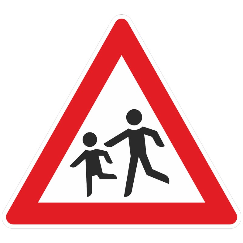 - signalisiert Gefahr durch plötzlich auf die Fahrbahn laufende Kinder