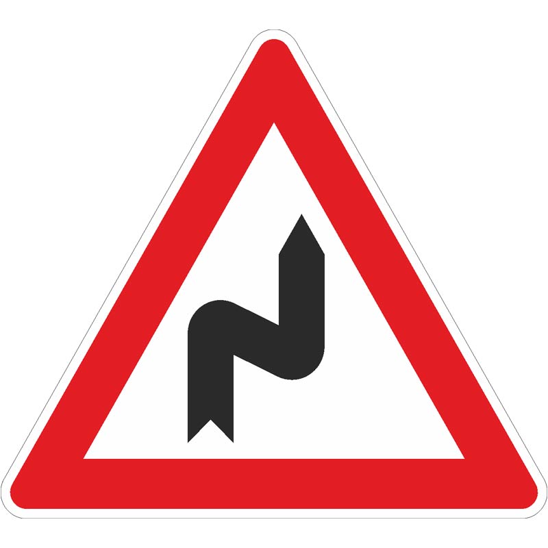- bei mehreren Kurven Kombination mit Zusatzzeichen zur Streckenlänge; dann keine Warnung vor den jeweiligen Kurven nötig