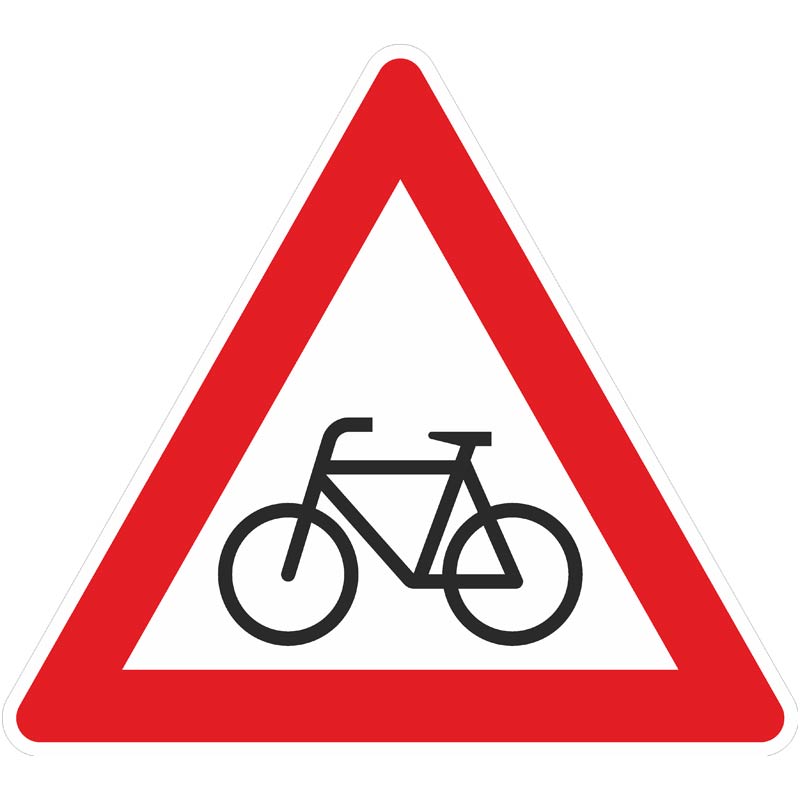 Das Verkehrsschild mit der Botschaft „Achtung Radfahrer“ kennzeichnet Stellen, an denen der Radverkehr außerhalb erwartbarer Situationen wie Kreuzungen und Einmündungen den Fahrweg quert oder auf ihn bzw. an ihm entlanggeführt wird.