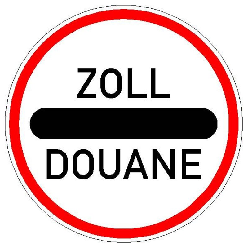 Mit dem Verkehrszeichen 392 „Zollstelle“ erhalten Sie ein rundes Hinweisschild mit schmalem rotem Rand, weißer Innenfläche und schwarzer Beschriftung. In der Mitte steht oberhalb des waagerechten Trennbalkens in Großbuchstaben die Aufschrift „MAUT“, unterhalb „DOUANE“, französisch für „Zoll“.