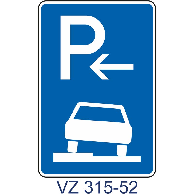 Die Verkehrszeichen 315-50 – 315-53 „Parken auf Gehwegen halb in Fahrtrichtung links“ sind rechteckige, hochkant anzubringende Verkehrsschilder mit blauem Grund. Sie zeigen in Weiß das Sinnbild eines Fahrzeugs, das halb auf dem Gehweg, halb auf der Fahrbahn parkt, und zwar längs in Fahrtrichtung.