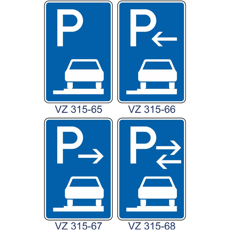 VZ 315-65 – 315-68 Parken auf Gehwegen ganz in Fahrtrichtung rechts im Überblick