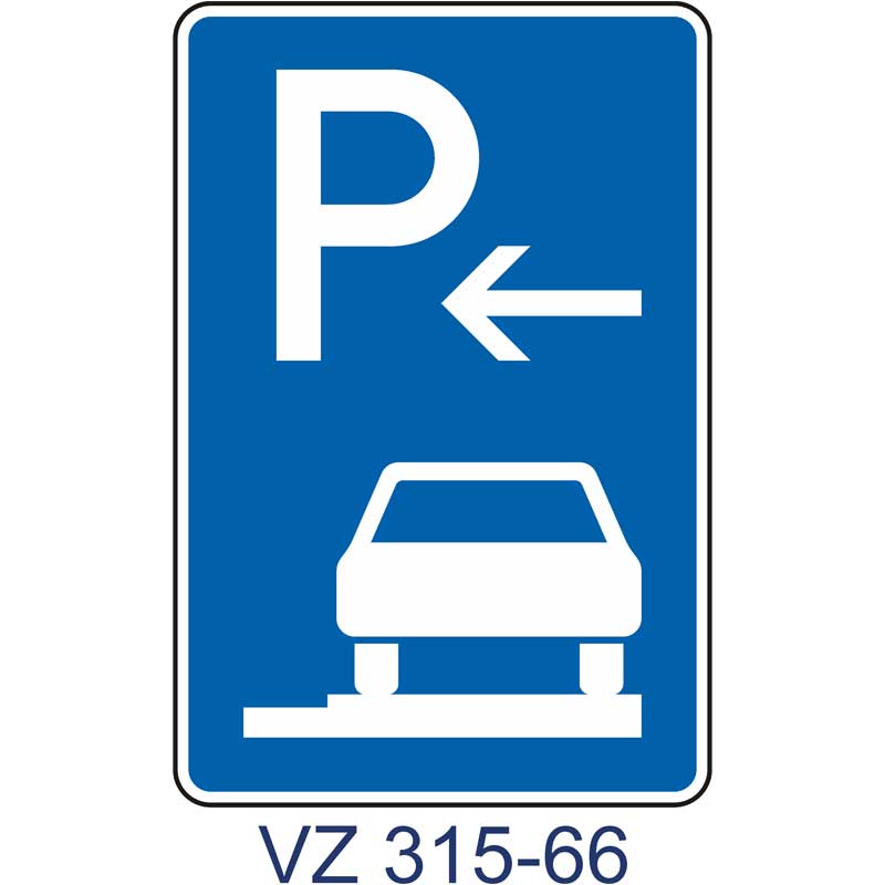 Mit den Verkehrszeichen 315-65 – 315-68 „Parken auf Gehwegen ganz in Fahrtrichtung rechts“ erhalten Sie rechteckige, hochkant aufzustellende Verkehrsschilder. Sie sind blaugrundig mit einem weißen Sinnbild, das ein längs in Fahrtrichtung auf dem Gehweg parkendes Fahrzeug darstellt.