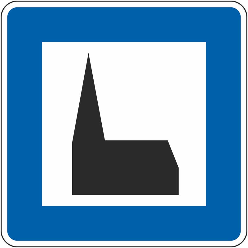 Einsatz: VZ 365-59 richtet sich vor allem an ortsfremde Autoreisende und steht auf Autobahnen dort, wo üblicherweise keine Kapelle oder Kirche vermutet wird.