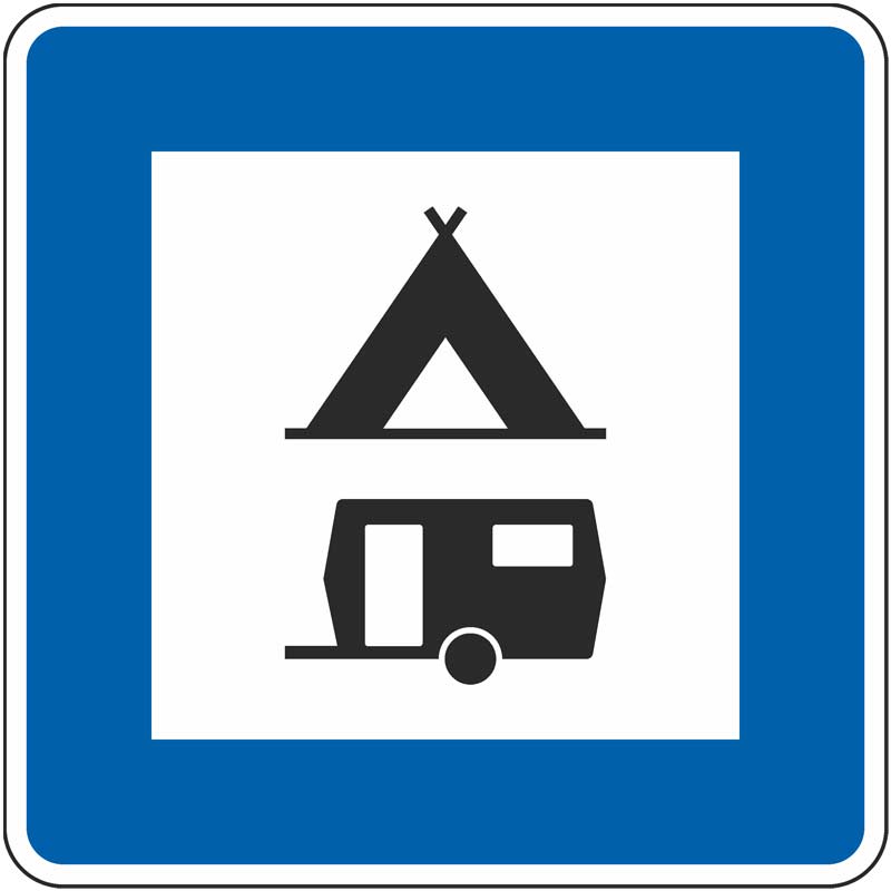 Bedeutung: Das Richtzeichen 365-60 weist Verkehrsteilnehmende darauf hin, dass sie in der Nähe einen Campingplatz finden, auf dem sie ihren Wohnwagen abstellen und/oder zelten können.