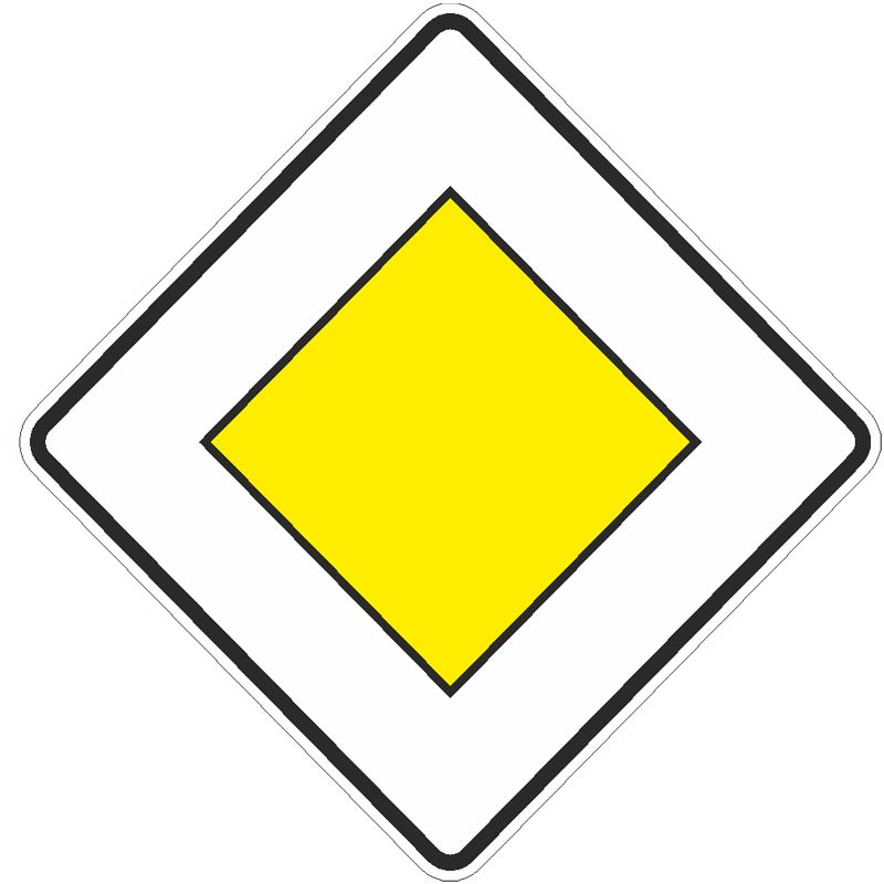 Das Verkehrszeichen 306 „Vorfahrtstraße“ ist ein quadratisches Schild mit weißem Rand und gelber Mitte, das auf der Spitze steht (Raute). Es gehört zur Kategorie der Richtzeichen.