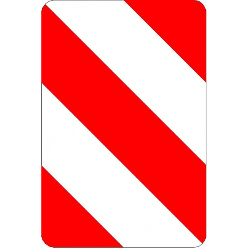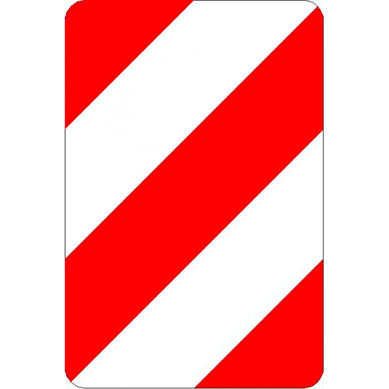 Das Verkehrszeichen 626-10 bzw. 626-20 Leitplatte ist eine Verkehrseinrichtung in rechteckiger Form mit rot-weißer Schraffierung.