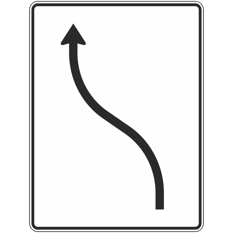 Das Verkehrszeichen 511-10 "Verschwenkungstafel ohne Gegenverkehr, 1-streifig nach links" zeigt auf weißem Grund einen schwarzen, nach links geschwungenen Pfeil. Das Rechteckschild wird hochkant montiert.