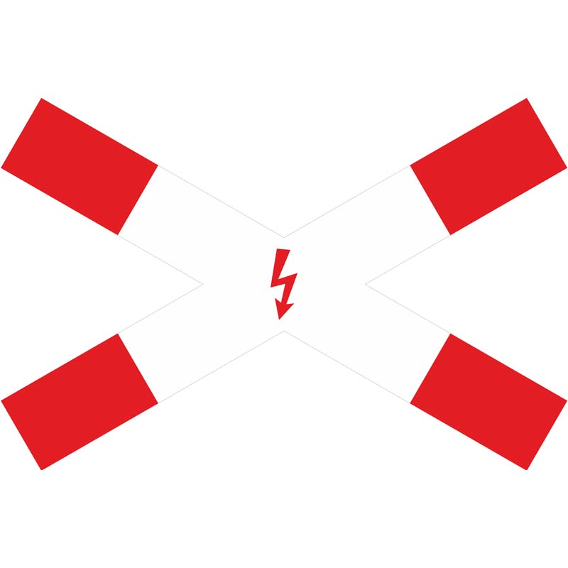 VZ 201-53 Andreaskreuz, liegend mit Blitzpfeil im Überblick