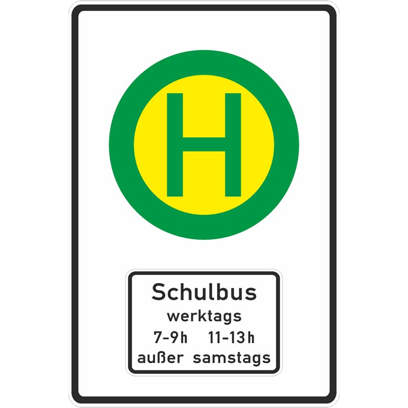 Bedeutung: Das Gebots- bzw. Verbotsschild kennzeichnet Schulbus-Haltestellen. Bis zu 15 Meter vor und hinter dem Haltestellenschild gilt ein Parkverbot. Es müssen zudem die in der Straßenverkehrsordnung § 20 festgelegten Regeln für das umsichtige Vorbeifahren beachtet werden. Unter anderem ist der Schulbus beim Abfahren von der gekennzeichneten Haltestelle vorzulassen. Dies bedeutet: Blinkt der Bus links, muss das nachfolgende Fahrzeug warten.