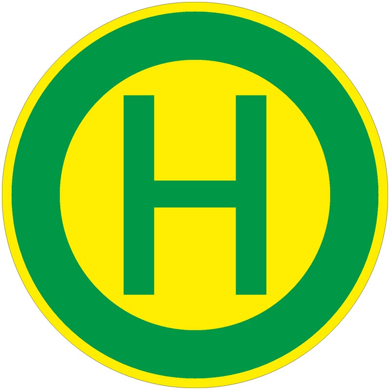 Das Verkehrszeichen 224 „Haltestelle, einseitig“ ist ein rundes Verkehrsschild (Ronde) mit gelbem Grund, grünem Rand und einem grünem „H“ in der Mitte.
