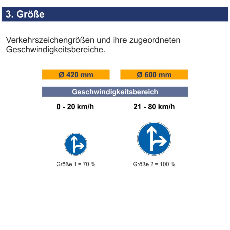 - Gebotsschild wird vor dem Punkt aufgestellt, an dem die Fahrtrichtungsänderung gilt