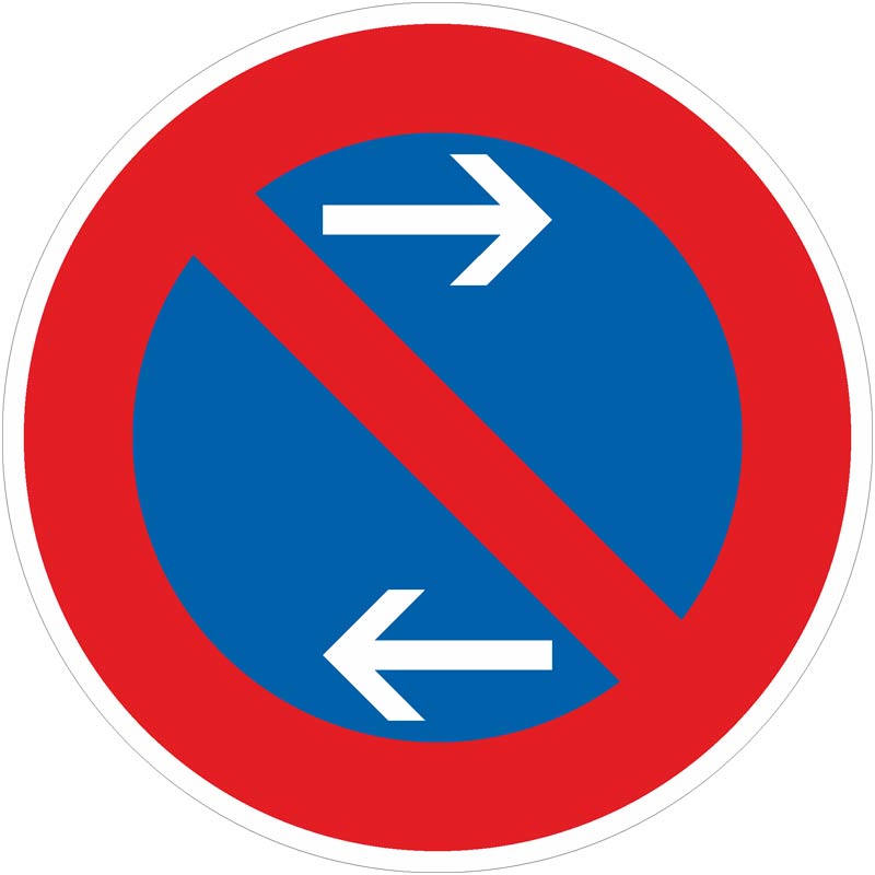 Varianten: Das Verkehrszeichen 286 gibt es bei uns auch „blanko“ sowie mit weißen Richtungspfeilen, die Anfang oder Ende des eingeschränkten Haltverbots für die jeweilige Straßenseite anzeigen.