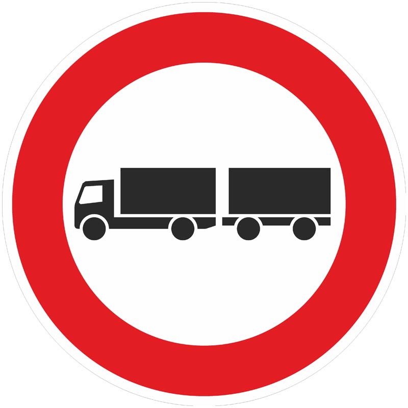 Bedeutung: In mit VZ 257-57 beschilderten Bereichen ist Lastkraftwagen (LKW) mit Anhänger die Verkehrsteilnahme untersagt. Als LKW gelten große Kraftfahrzeuge für den Gütertransport. Ein Anhänger ist ein Fahrzeug ohne eigenen Antrieb. Fahren sie im Gespann, werden sie auch als Lastzug bezeichnet.
