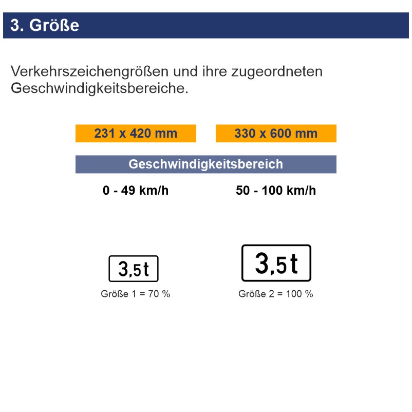 Bedeutung: Das Zusatzzeichen 1053-55 wird mit einem Standard Verkehrszeichen kombiniert und weist darauf hin, dass sich die Regelungen des Hauptzeichens auf Fahrzeuge mit einer Gesamtmasse von über 3,5 Tonnen beziehen.