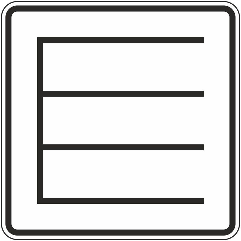 Einsatz: VZ 1053-38 kann mit dem Richtzeichen „Parken“ (VZ 314) kombiniert werden und weist darauf hin, dass Fahrzeuge auf der so gekennzeichneten Fläche in Querrichtung zu parken sind. Die Zusatztafel 1053-38 wird unmittelbar, meist unter dem Verkehrszeichen, auf das sie sich bezieht, befestigt.