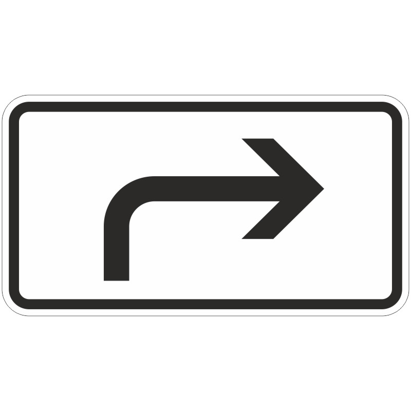 Das Verkehrszeichen 1000-21 „Vorankündigung, rechtsweisend“ ist ein weißes Rechteckschild mit schwarzem Rand und schwarzer Beschriftung. Darauf ist ein nach rechts gerundeter Pfeil zu sehen.